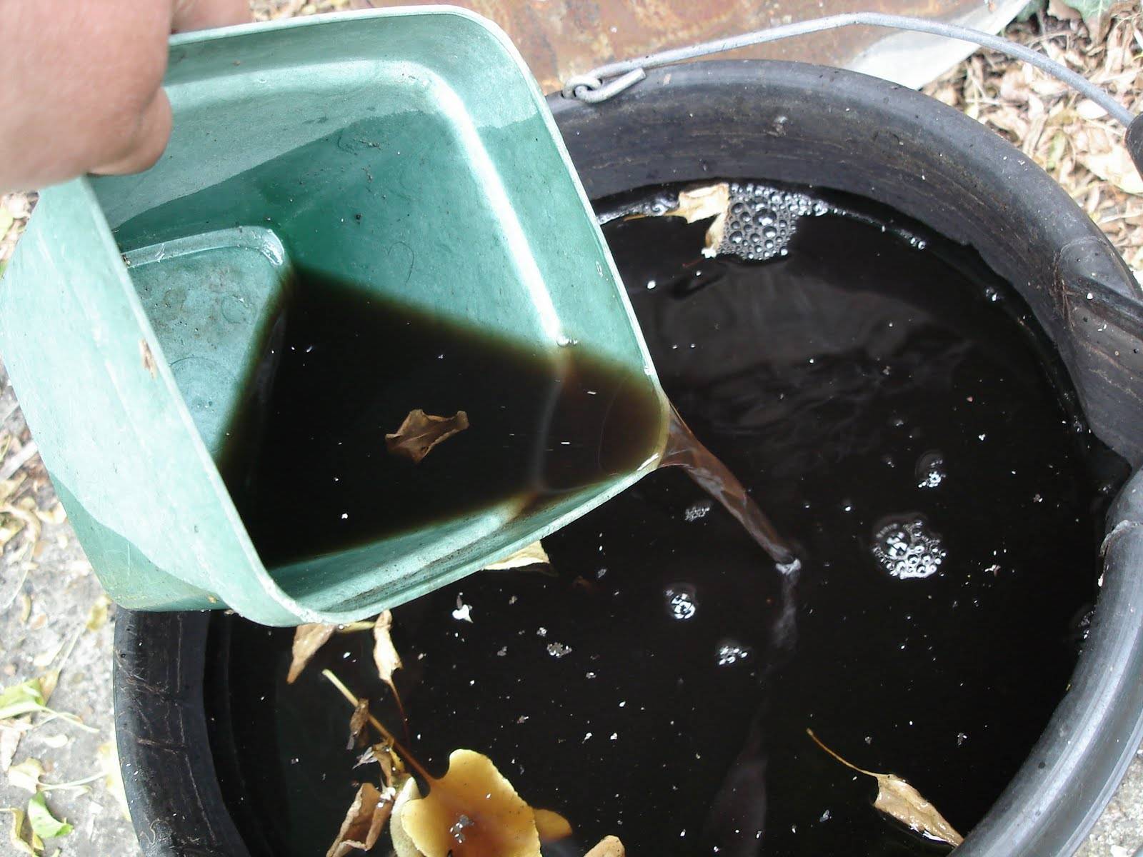 Налейте теплую воду и поставьте в теплое место на сутки. Когда начнется брожение, подкормите гортензию, выливая по 5 л под куст.