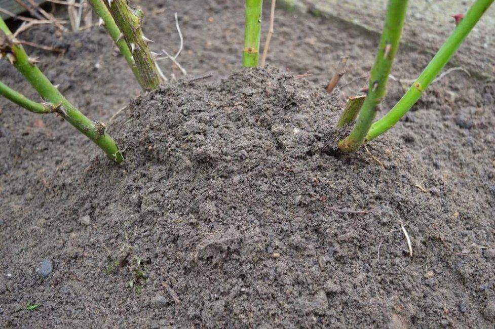 Окучивание производится путём создания невысокого (до 20 см) холмика в прикорневой зоне. Розы сортов флорибунда или чайно-гибридных следует полностью засыпать при окучивании. Таким образом удастся сохранить их почки при любых морозах.