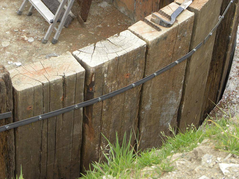 Устройство деревянной подпорной стенки