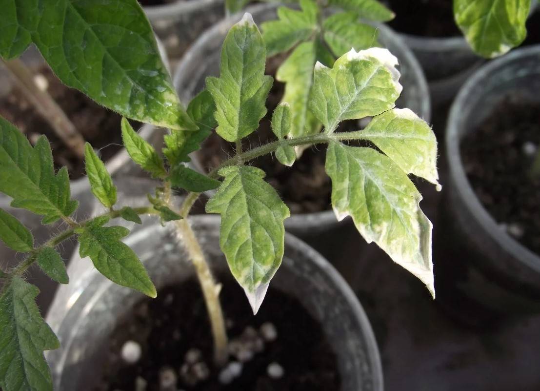 Светлые желто-зеленые пятна на листьях помидоров — дефицит азота
