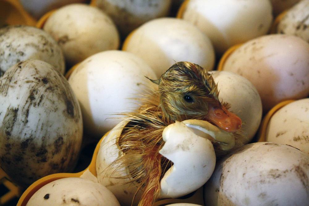 Рожденные утята переносятся в брудер, где им обеспечено постоянство температуры и освещения, правильное питание по возрасту.