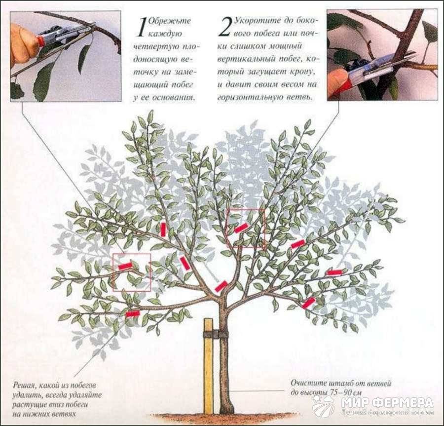 Весенняя обрезка играет ключевую роль в формировании кроны и сохранении длительного плодоношения (рисунок 3).