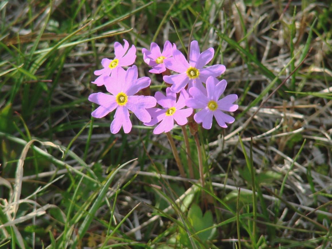 Примула имеет невысокий рост, пористые листья, одиночные цветы. Зачастую из-за большого количества цветов зелени не видно. Наиболее часто встречаются сорта фиолетового, лимонного, белоснежного, пурпурного оттенка. Реже встречается нежно розовый куст.