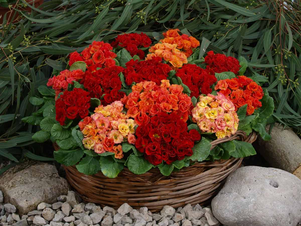 Это самая красивая группа примул ушковых, к тому несложных в выращивании. Сортимент представлен крупноцветковыми сортами оранжевой, пурпурной, лиловой, темно-вишневой, розовой, лимонной окраски. В цветочных магазинах продаются сортовые семена этой группы.