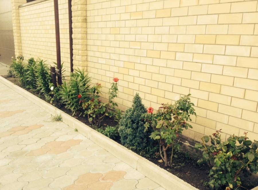 - расположенная около стены дома полоска цветов скроет фундамент;