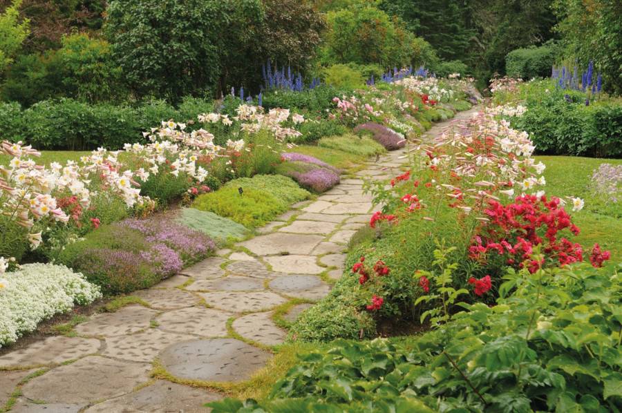 Учитывайте особенности цветения культур, занимаемую площадь, состояние почвы и затененность/освещенность. Чтобы посадка дольше украшала участок яркими красками, используйте луковичные растения, которые цветут уже ранней весной. Когда они начнут увядать, вас будет радовать рабатка из многолетников вдоль дорожки. Следите, чтобы между растениями не было больших просветов, хотя и затенять друг друга они тоже не должны.