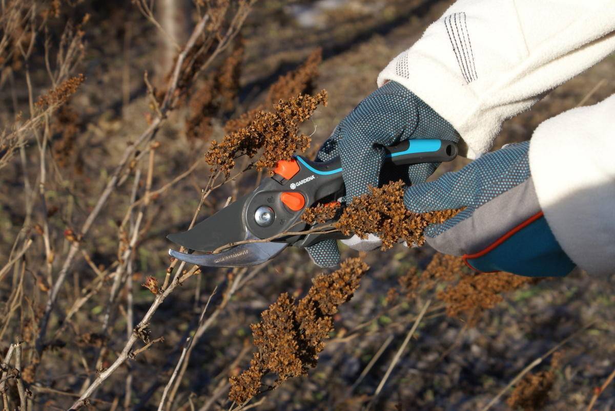 Кроме побегов, чтобы сохранить декоративный вид, кустарник также нуждается в обрезке соцветий. Осуществляется это при первой оттепели. Однако отсекать стоит только старые, уже отцветшие соцветия, обрезая их до наибольшей почки. Благодаря этому он приобретет более опрятный вид. После цветения метелки получают темно-красный оттенок и засыхают.