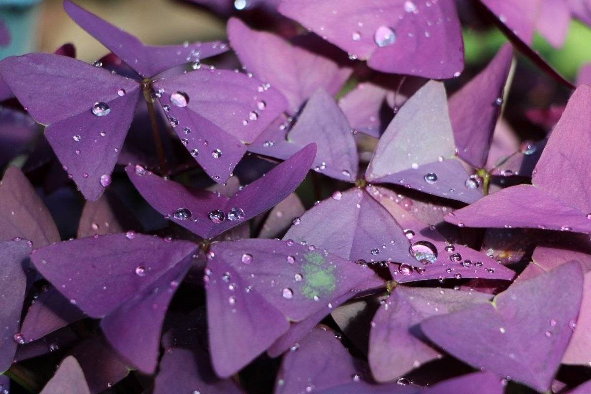 Или кислица фиолетовая, чаще других видов выращиваемая в комнатной культуре, является невысоким клубневым растением с темно-пурпурными пятнистыми трехдольными листьями на длинных черешках. Лист кислицы фиолетовой похож на трепетные крылья бабочки, за что ее назвали «мадам Баттерфляй». Цветки у этого вида мелкие, белого, светло-розового или сиреневого цвета.