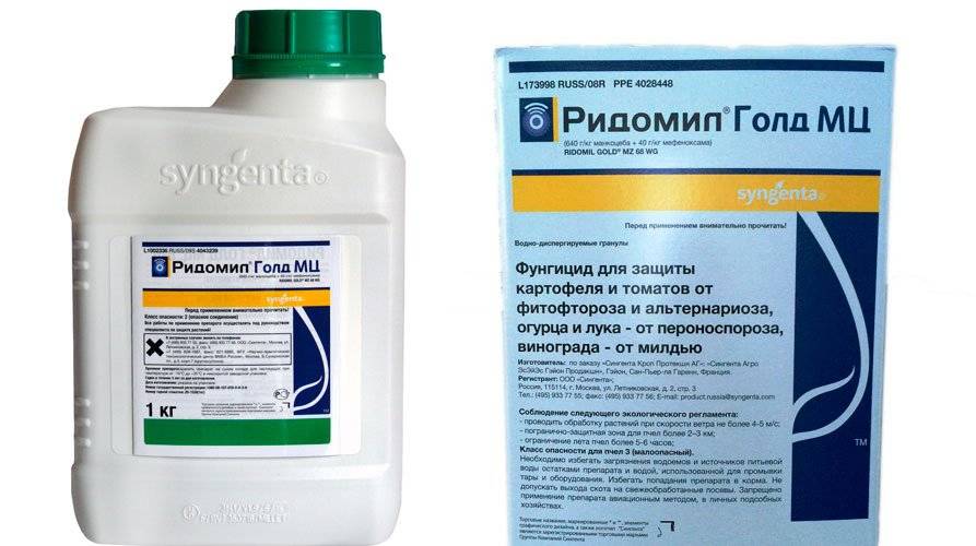 Ридомил, для использования на больших площадях, выпускается в коробках весом 1 и 5 кг, а разновидность голд и голд МЦ – в пакетиках по 25 и 50 гр