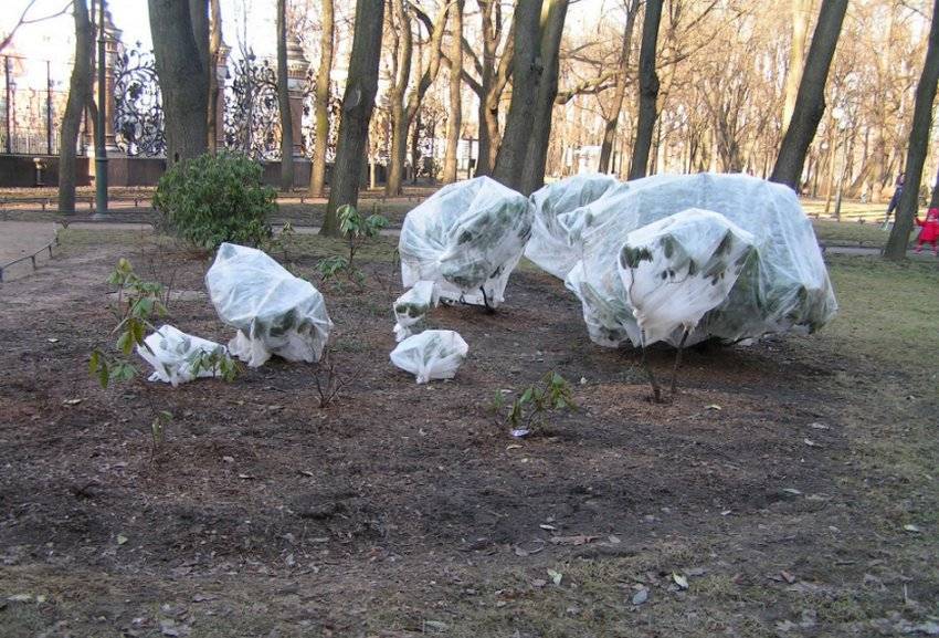 В легком укрытии нуждаются листопадные виды рододендронов и некоторые виды вечнозеленых: