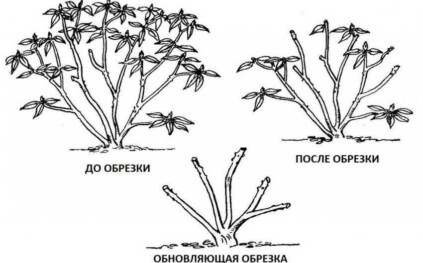 Обрезают кустарники несколькими методами, в зависимости от целей и потребностей. Санитарная процедура выполняется каждый год для удаления сухих, повреждённых и больных веток. Без подобного действия иммунная система существенно ухудшается, повышается риск развития грибка и других болезней.