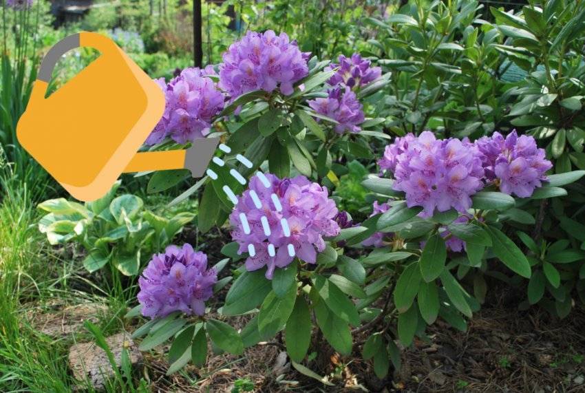 Рододендроны очень требовательны к поливу. Их нельзя переливать и подсушивать. В течение вегетации следят за влажностью приствольного круга, делают отводные канавки для лишней влаги, мульчируют почву, чтобы она не пересыхала.