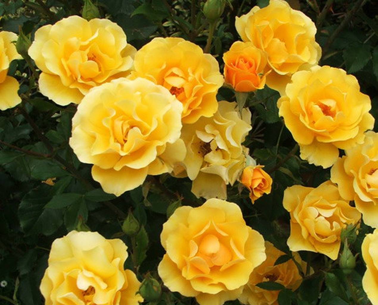 Роза Голден Дримс Golden Dreams (оригинальное название Gold Reef). Селекция: Poulsen 1998г. Высота: 80-110 см. Ширина: 70 см. Цветки: темно-золотистые, полумахровые или махровые, около 8 см в диаметре, с легким ароматом. Цветение: повторноцветущая. Устойчивость к заболеваниям: мучнистая роса: , черная пятнистость: . Особенности: очень хороша в срезке, особенно в миниатюрных букетах.