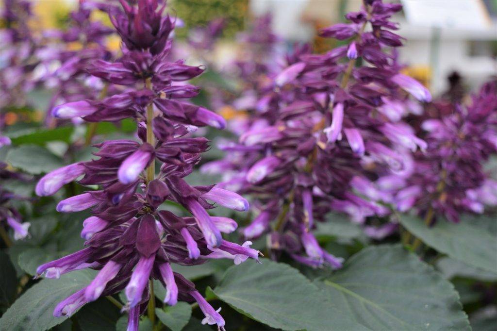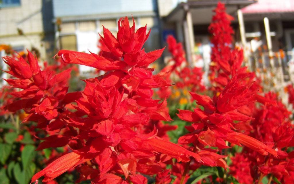 Сальвия сверкающая, блестящая (Salvia splendens) – наиболее популярная сальвия у российских садоводов, выращиваемая в качестве однолетника. Цветет с июня и до заморозков, окрас – от оранжево-красного до темно-фиолетового. Предпочитает умеренно влажные почвы.