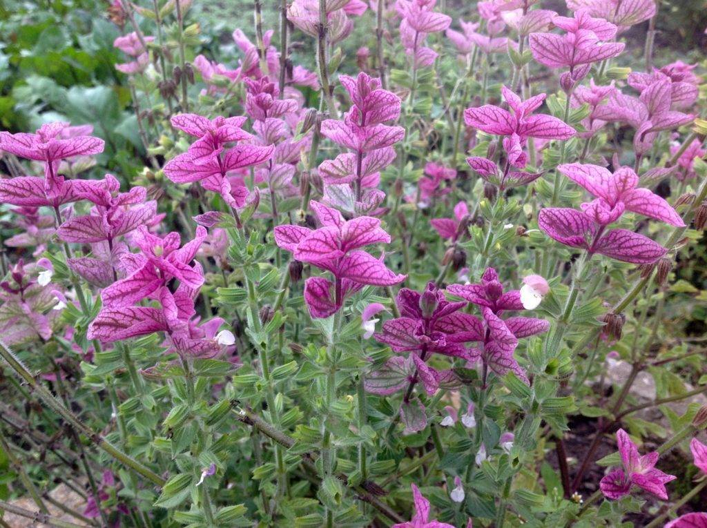 Зеленая сальвия представляет собой длинные соцветия, на которых много нежно-розовых или нежно-фиолетовых цветов. Цветы этого сорта будут очень хорошо оттенять какие-либо растения ярко-фиолетового и ярко-розового цвета.