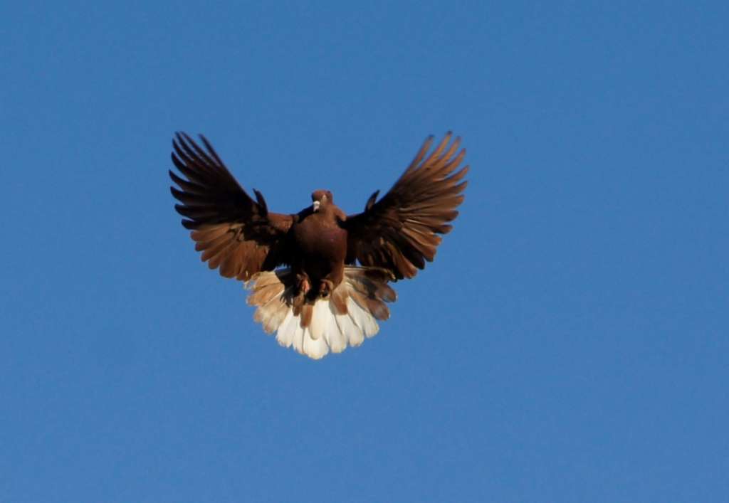 Парят серпастые голуби без кругов, плавно и очень легко, горизонтально по отношению к земле. Со стороны их полет кажется несколько замедленным.