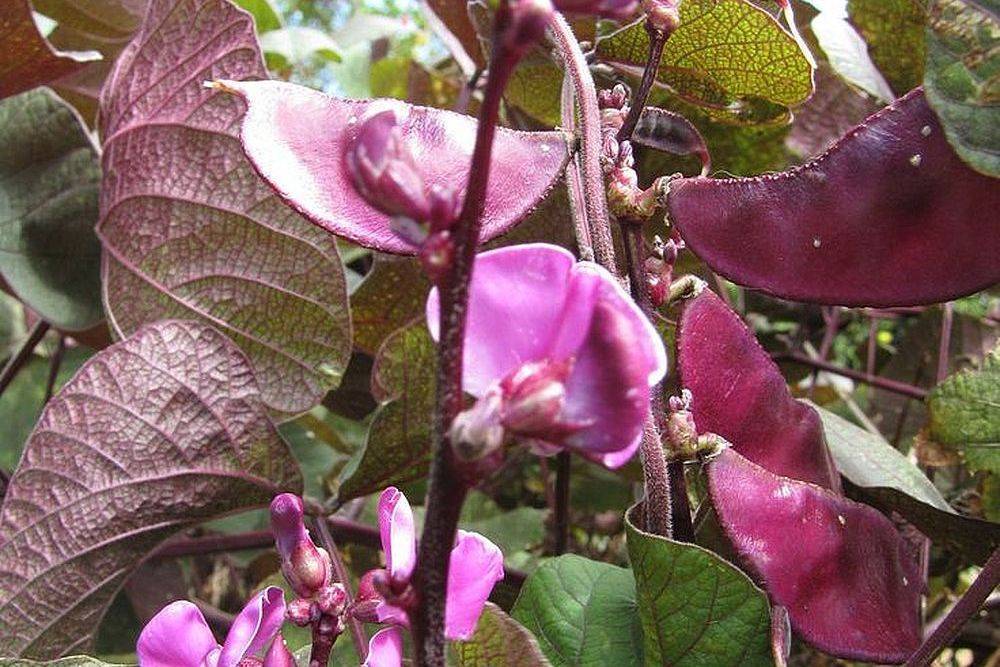 Декоративный сорт долихос пурпурный произрастает как растение-однолетник. Яркие плети пурпурного долихоса вытягиваются на 3 м. Зелёная листва с красновато-фиолетовым налётом.