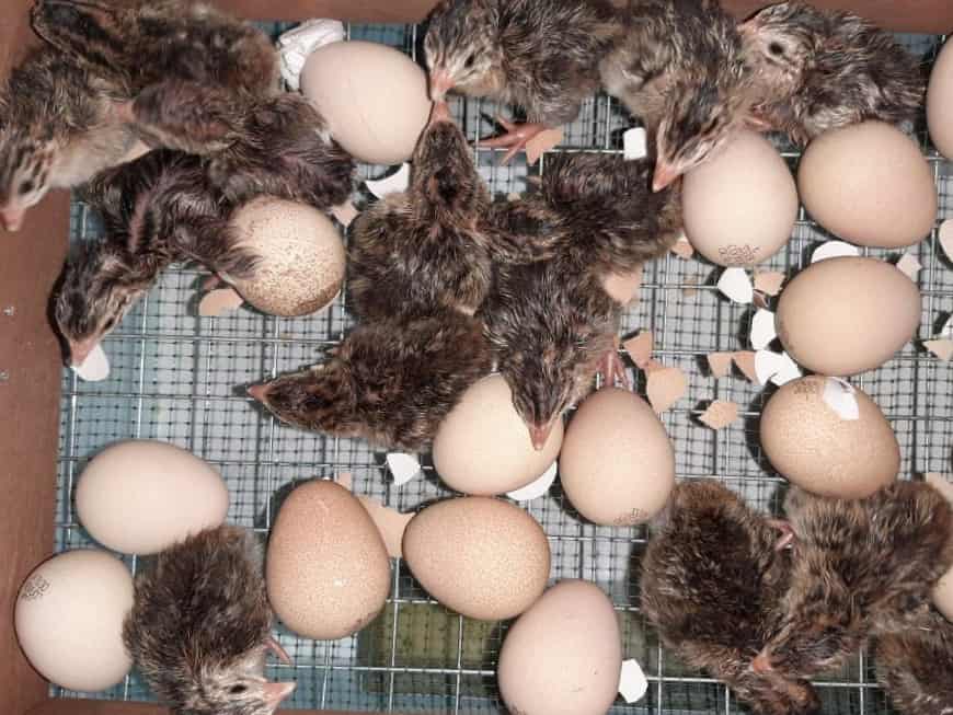 Условия в инкубаторе для кур и цесарок различаются. Вторым необходимы более суровые условия, в виде малой влажности воздуха. Яйца проверяют обычно через две недели, после закладки в искусственные условия. Вылупившихся птенцов помещают в брудер, где они могут находиться пока не появится перо или даже дольше, в зависимости от климата. В первые дни жизни им необходима оптимальная высокая температура, чтобы не произошло переохлаждения.