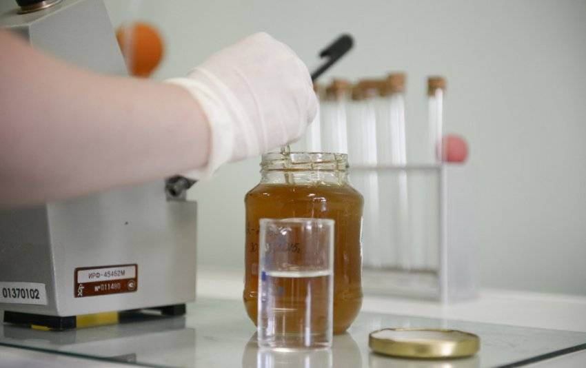- Чтобы лучше определить проверяемый пчелиный мёд на количество пади, в него по капле добавлять воду до того момента, пока прозрачность не сравняется с контрольной пробиркой.