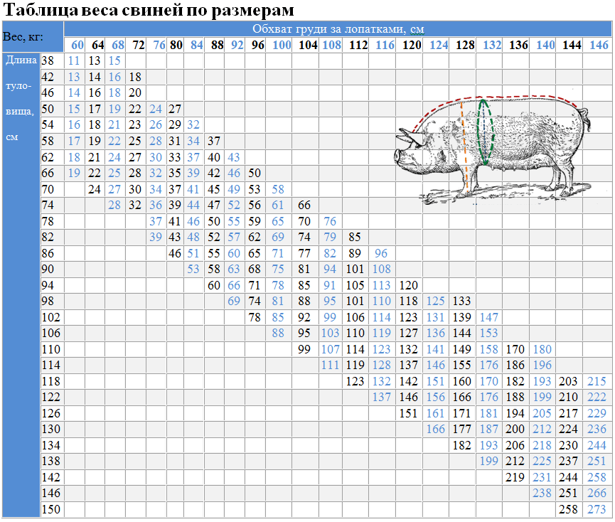 Таблица измерения веса свиней