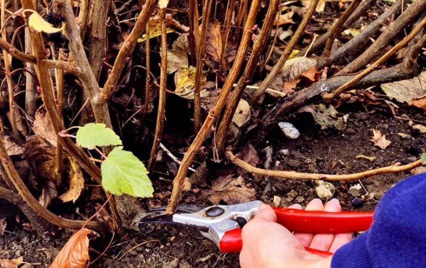 - Если совсем молоденьких побегов мало, то можно простимулировать куст и удалить 1-2 наиболее старых ветви.
