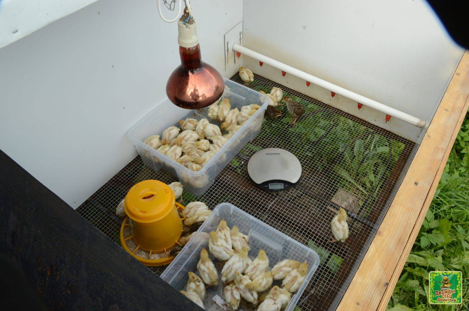 Молодых перепелов отсаживают в брудер на 14 дней. Далее они содержатся как и остальные в клетках.