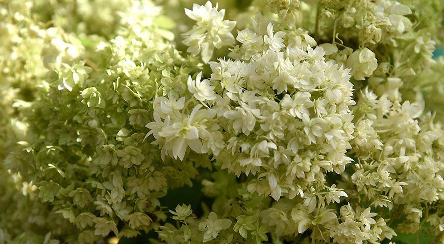- цветки — соцветия — метелки, крупные, вначале цвета лайма (зеленоватые), чисто белые в полном цветении, розоватые в конце цветения;