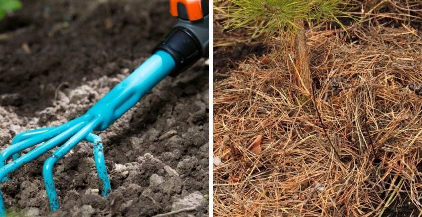 Взрослое растение само создаёт вокруг себя слой мульчи из опавшей хвои, которую иногда стоит рыхлить, чтобы пропускать к корням воздух.