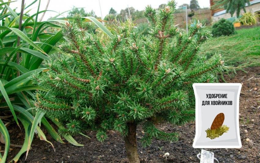 - ранней весной в область приствольного круга заделывают купленные в магазине минеральные удобрения для хвойных культур, следуя инструкции на упаковке;