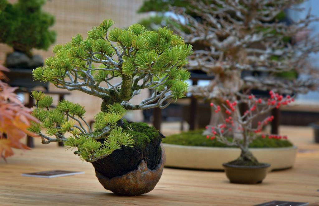 Сосна в миниатюре должна выглядеть как копия, произрастающей на воле. Чтобы создать эффект старого дерева, кору сосны специально разрезают в нескольких местах, а ветви изгибают путем подвешивания груза и обматывания ветвей и ствола проволокой.