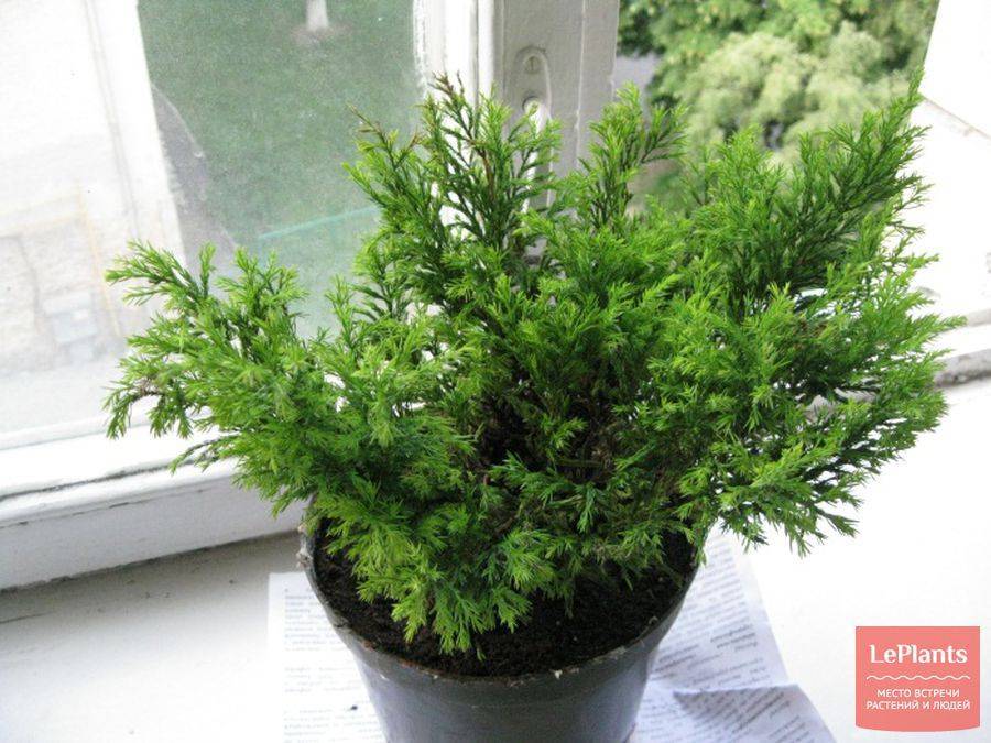 Так же нередко можно встретить в продаже в предновогодние дни, особенно часто продают можжевельник китайский, имеющий мелкую, плотно прижатую хвою разных оттенков – от сизо-зеленого до золотистого. Это «приспособленец» при соблюдении некоторых условий с успехом может расти как в саду, так и в комнате. На улице ему нужен слегка затененный участок, защищенный от ветра и дренированные почвы, а в доме самая комфортная температура – от 10 до 18°С, а в отопительный сезон рекомендуется частое опрыскивание. Можжевельник китайский хорошо подходит для создания бонсай в силу своей эластичности и быстрого роста боковых побегов.