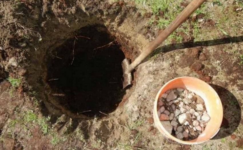 - На дно лунки уложить дренажный слой высотой 10 см.