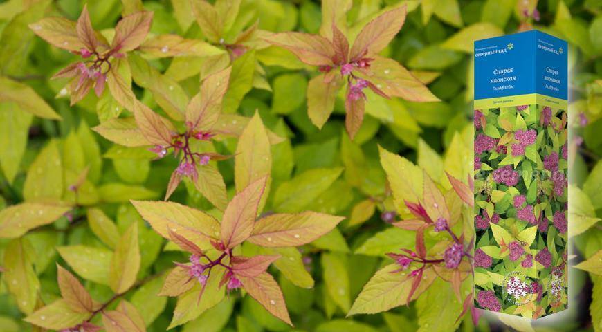 Goldflame – листва различных оттенков в течении сезона: оранжево-красная весной, разных оттенков желтого летом и медно-оранжевая осенью. Сами цветки темно-розовые.