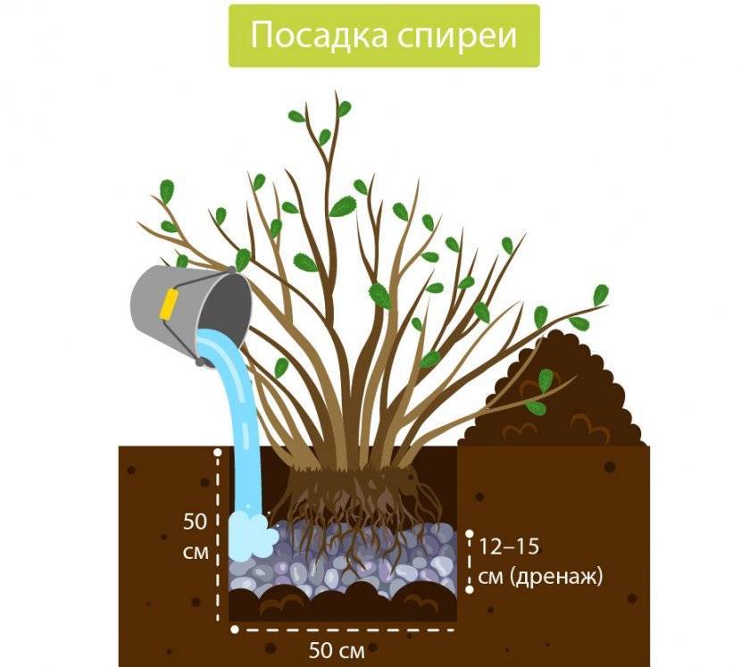 Выбранный для посадки спиреи участок за 1-2 недели до этого перекапывают и вносят в грунт органические удобрения.