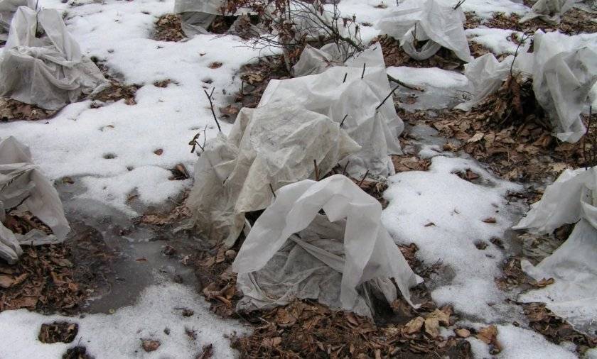 В качестве укрытия используют сухие листья или опилки, которыми присыпают пригнутые к земле побеги слоем до 15 см.