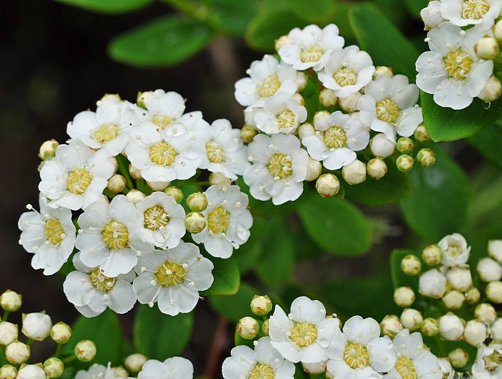 Обильно осыпаны мелкими цветами, собранными в различные соцветия с широким спектром окраса от белого до малинового.