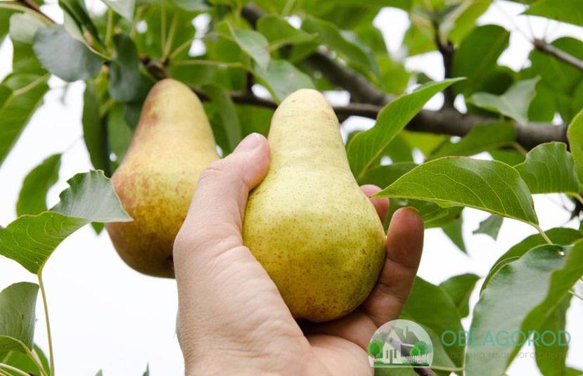 Чтобы избежать перезревания, урожай лучше собирать сразу. Недозревшие твердые груши также собирают: дают им пару дней полежать, за которые они доходят до спелости.