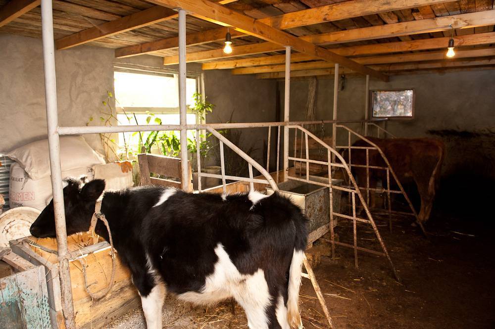 Если вы подразумеваете свободный выпас, т.е. без привязи, то рядом с сараем должен быть построен загон, куда животные могут выходить в любое время. Общая длина примерно 500 м на одну корову или теленка. Как правило, загон в небольших фермах выстраивается с расчетом 2-4 особей, включая телят. Иногда над ним выстраивают навес от солнца с черепицей или настилом, сам же забор, калитку и стойки выполняют из полноценного бруса.