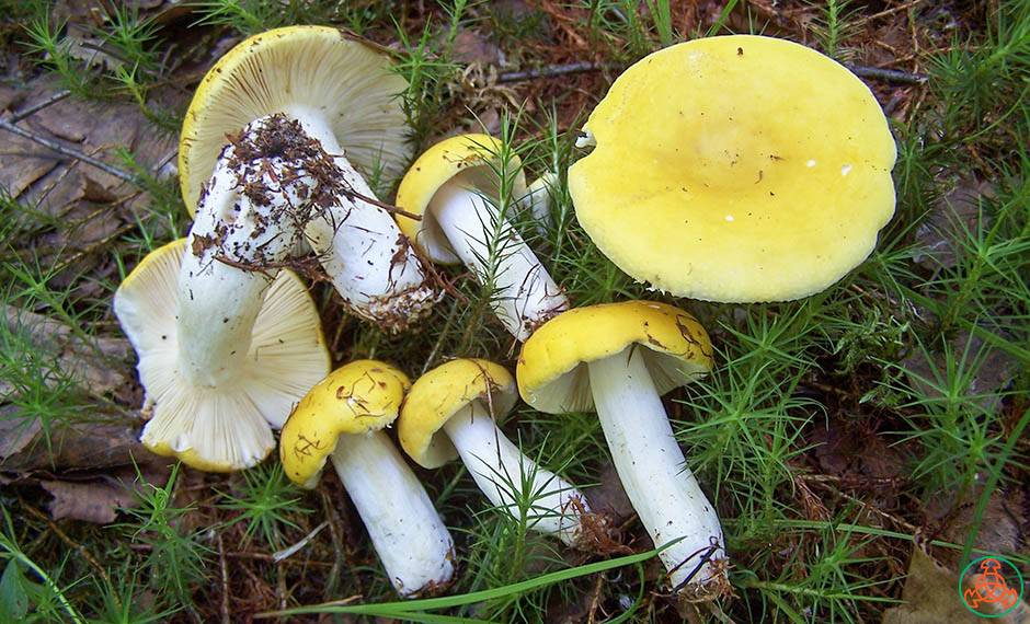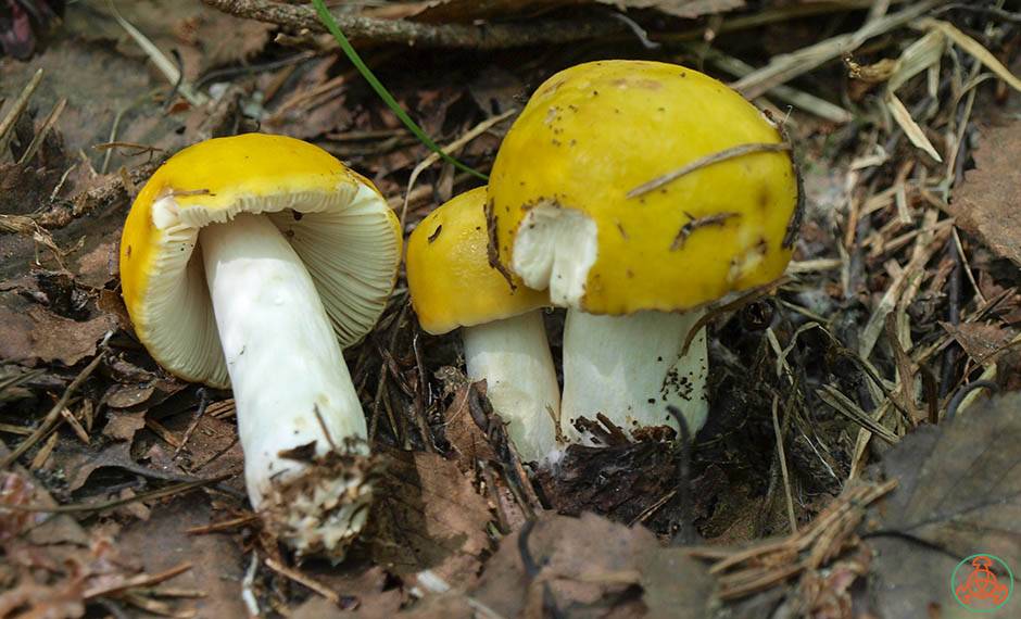 Самый опасный ядовитый двойник – разновидности бледной поганки с желтой шляпкой. В отличие от него, у сыроежки на ножке нет кольца, а у основания отсутствует характерное вздутие с вольвой. Желтый мухомор имеет характерные белые пятна на шляпке и остатки покрывала на ножке.