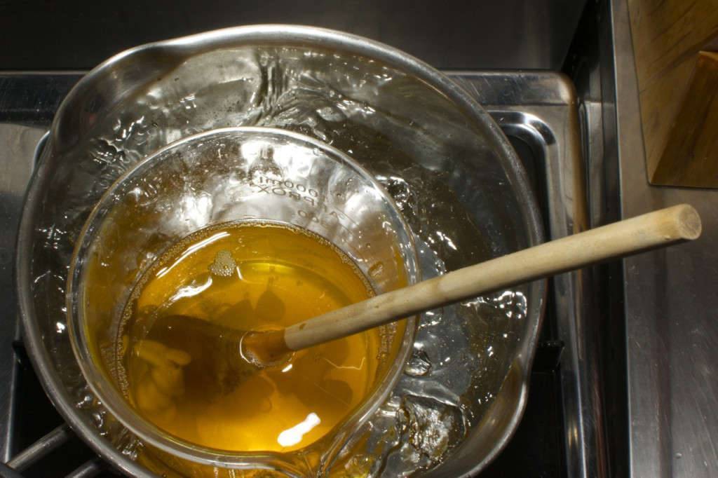 После полного расплавления пчелиного материала, он должен немного прокипеть, после чего будет готов.