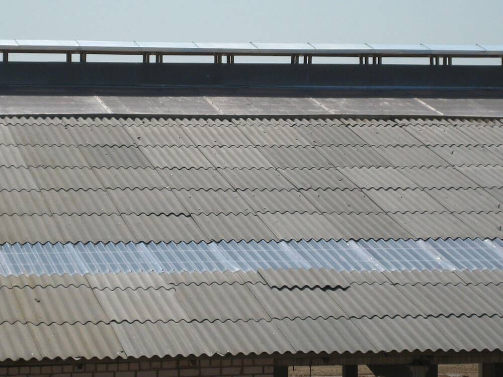 Сочетание асбестоцементного и прозрачного шифера поможет осветить пространство под обширной кровлей