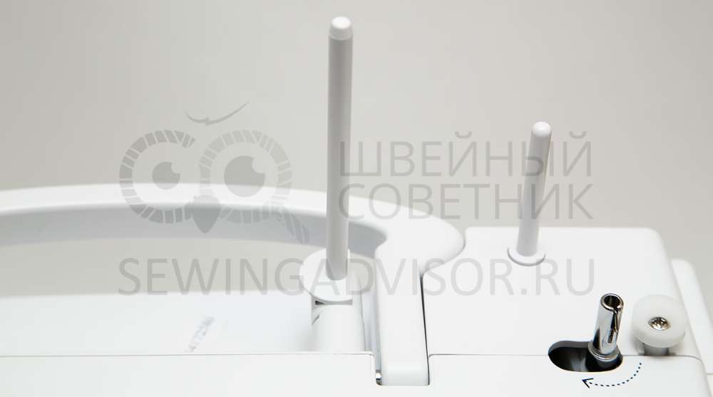 Для шитья двойной иглой устанавливаем дополнительный стержень для катушки (вертикальный).