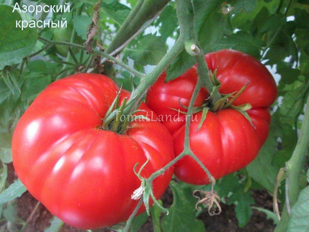 Среди сильнорослых томатов с большими плодами я выделила сорт «Красный великан». Этот любительский сорт выведен простыми огородниками. Несмотря на то, что листьев у него вырастает много, его не приходится слишком часто пасынковать. Плоды на нижних ярусах – самые большие. Если бы я не ленилась и выщипывала соцветия, оставляя не более 3-4 в кисти, плоды были бы ещё больше. Внутри он мясистый и содержит мало семян.
