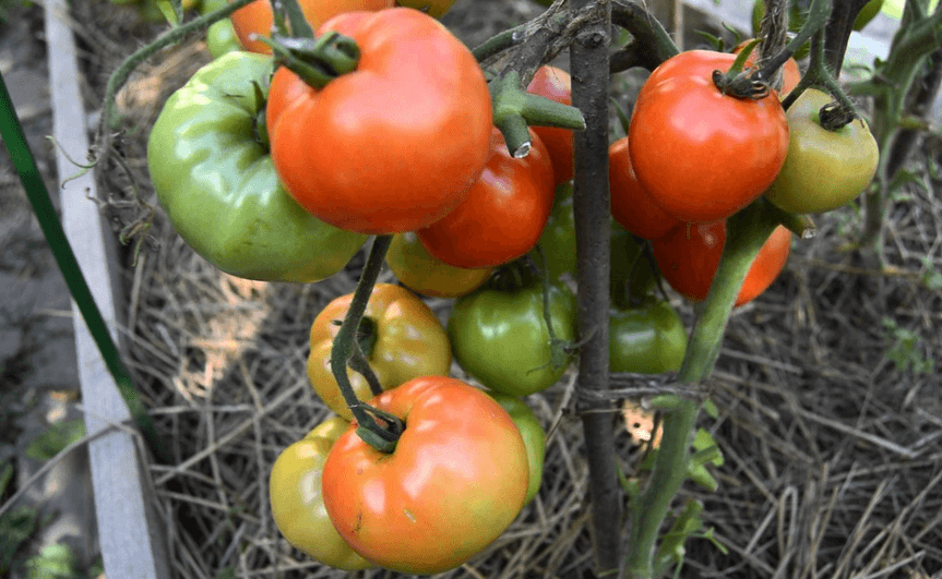 Подвязка к колышкам не является обязательным условием, но нужна для того, чтобы сильный ветер или мощный ливень не свалили куст. Помидоры окажутся в грязи, а сам куст может быть повреждён. Что касается теплиц, есть нюансы — куст вырастает выше, чем на открытом грунте, и может накрениться под весом плодов.