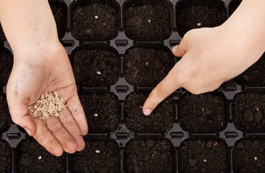 Семена закладывают на одинаковом расстоянии друг от друга, в чуть увлажнённую землю. Глубина посева — 2 см. После того как семена присыпали почвой, опрыскайте их и накройте плёнкой. До появления всходов ящик нужно поместить в затенённое место, температура проращивания — 22–25 °С.