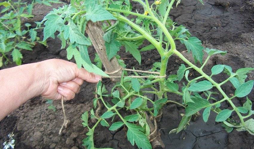 Кусты подвязывают к опорам сразу после высадки рассады на грядки.