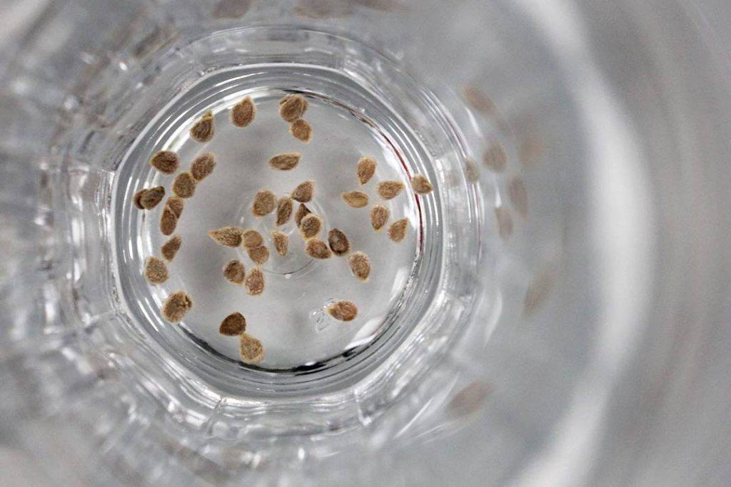 Когда содержимое банки посветлеет, семена опустятся на дно, а в верхней части соберется муть, содержимое банки надо слить, а семена уложить в сито и тщательно промыть под струей воды, чтобы удалить остатки мезги.