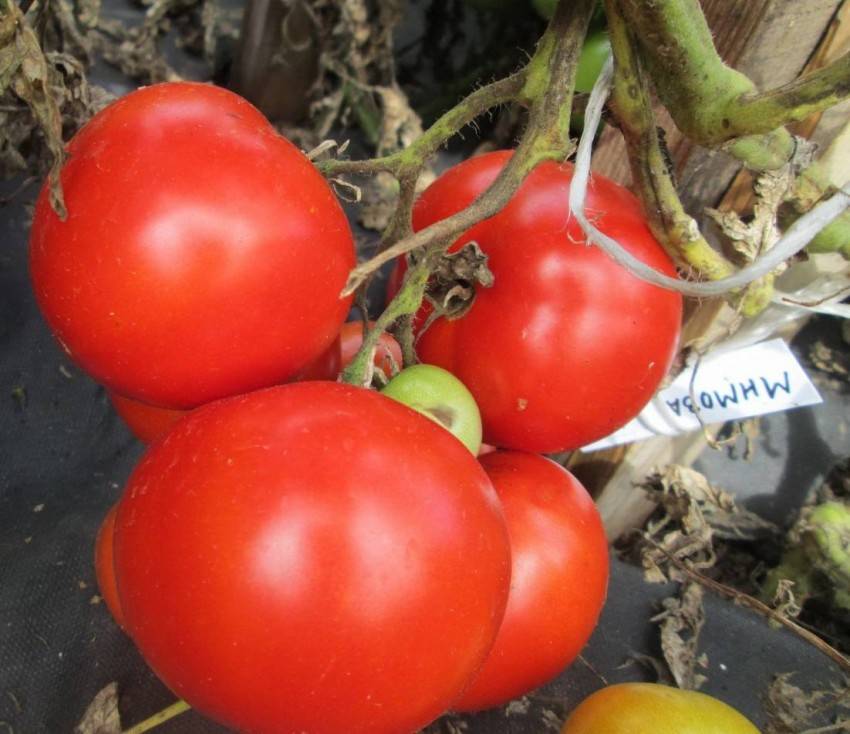 Плоды красные, полукруглой формы и со слабой ребристостью. Средний вес томатов – 120-140 г. Урожайность при этом чуть ниже – до 9,5 кг/м2. Срок созревания плодов увеличился до 110 дней.