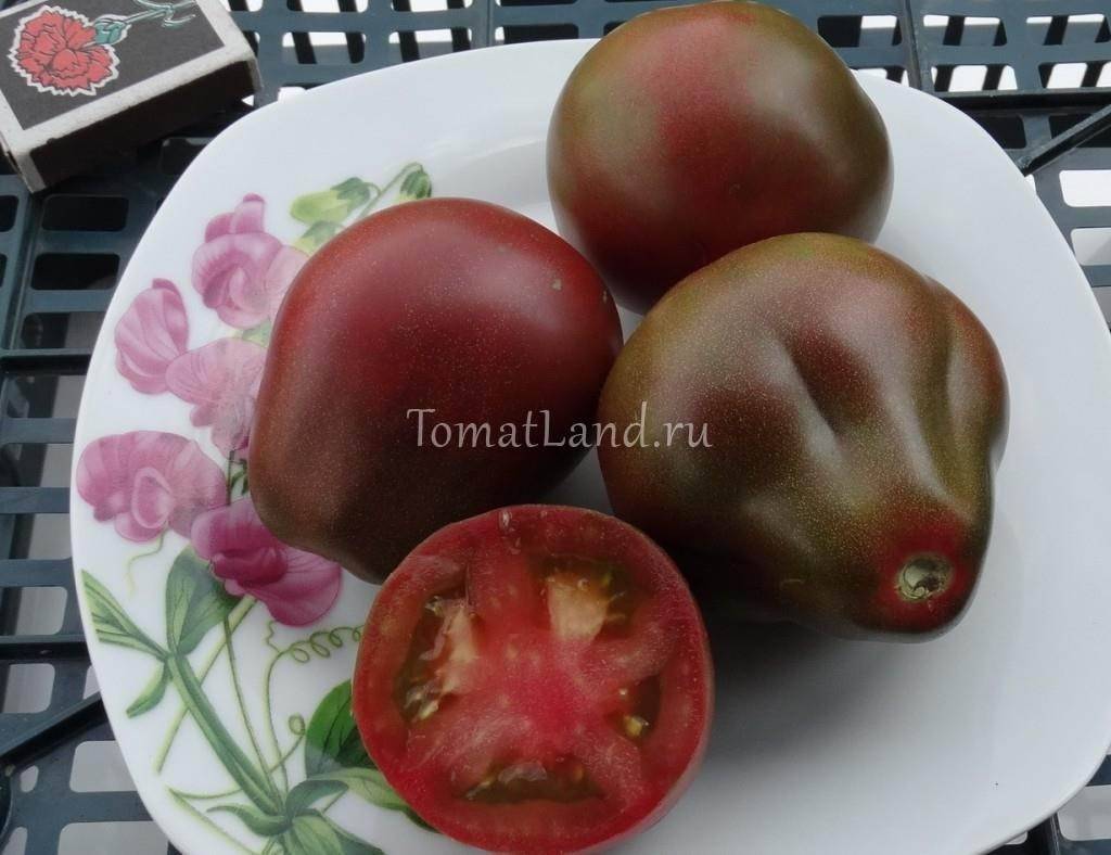 Размер помидоров небольшой, по форме напоминают сливу. Масса одного помидора около 100 грамм. Цвет их может варьироваться от красного до темно-коричневого оттенка. Вкус их сладкий с небольшим кисловатым привкусом. Аромат насыщенный, стойкий. Кожица томатов гладкая, тонкая, а внутри они «мясистые» и сочные. Семян в мякоти много, распределены по 3-4 камерам.
