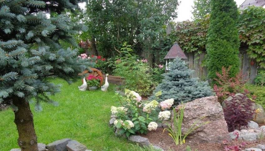 - Элементы композиции должны вызывать эмоции и создавать настроение. Например, голубая ель будет ассоциироваться с новогодними праздниками. Будет естественным желание посадить ель на видном месте.